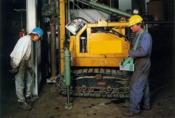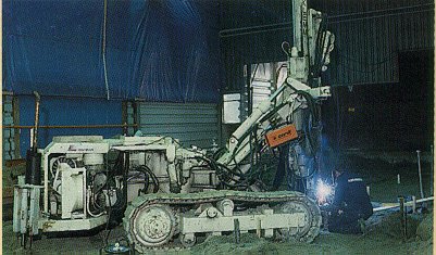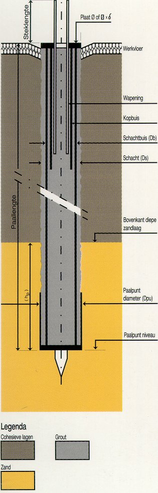 - de stalen schacht wordt in de grond geheid; door injecteren van grout