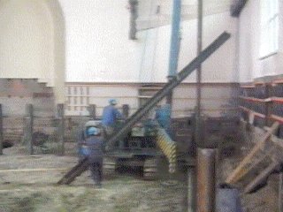 bij beperkte werkruimte, opgebouwd uit op elkaar gelaste segmenten, ingedreven met kleine machines