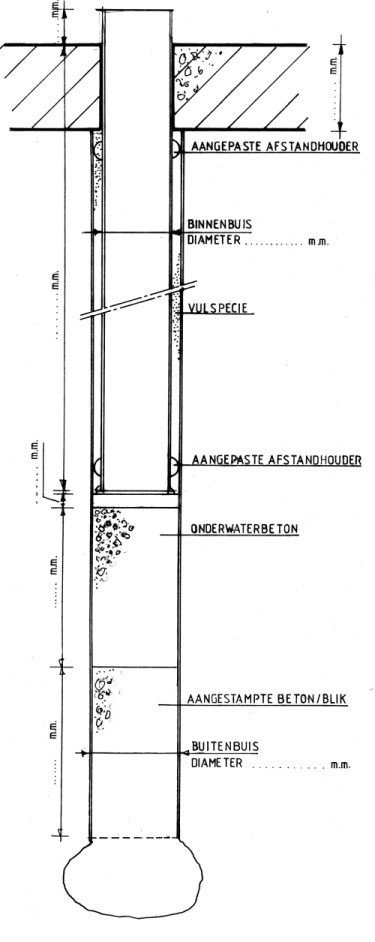 tussenruimte gevuld wordt met beton of mortel. De buitenbuis wordt ingedreven